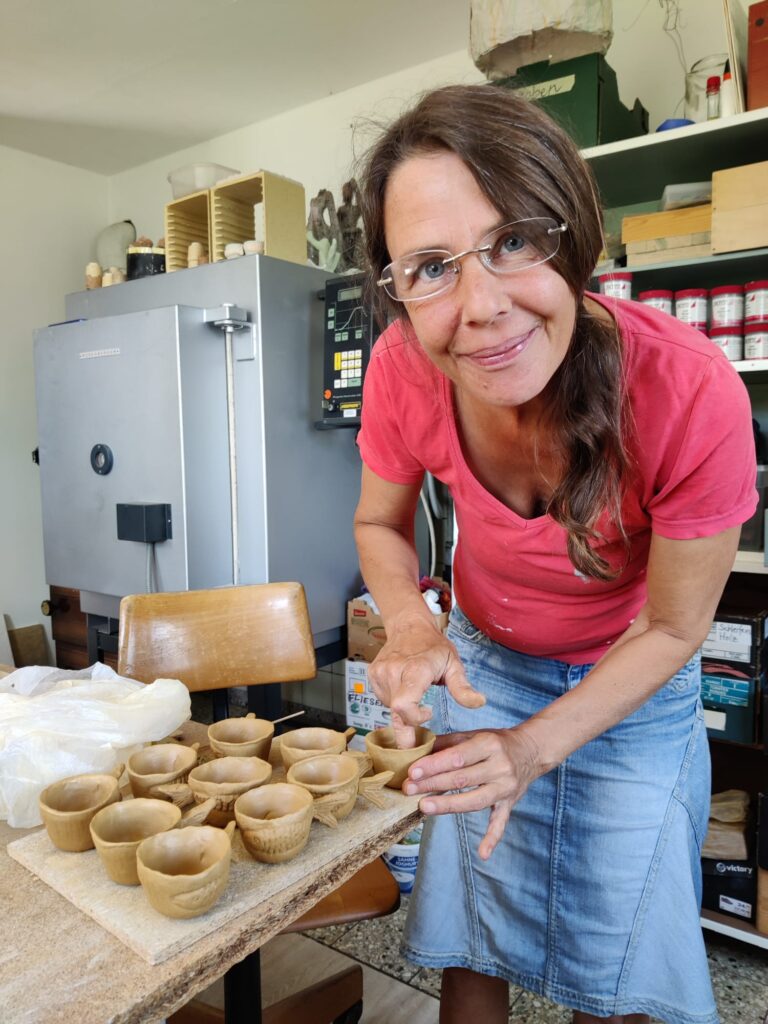 Die Künstlerei befindet sich im schönen Ostallgäu. Dort gibt es regelmäßig Kurse in Töpfern, Malen und Goldschmieden.